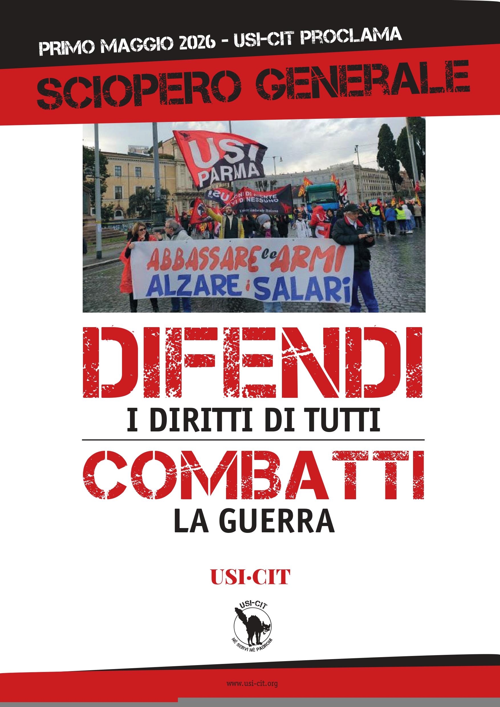 1 maggio 2026: sciopero generale (esclusi trasporti e scuola)